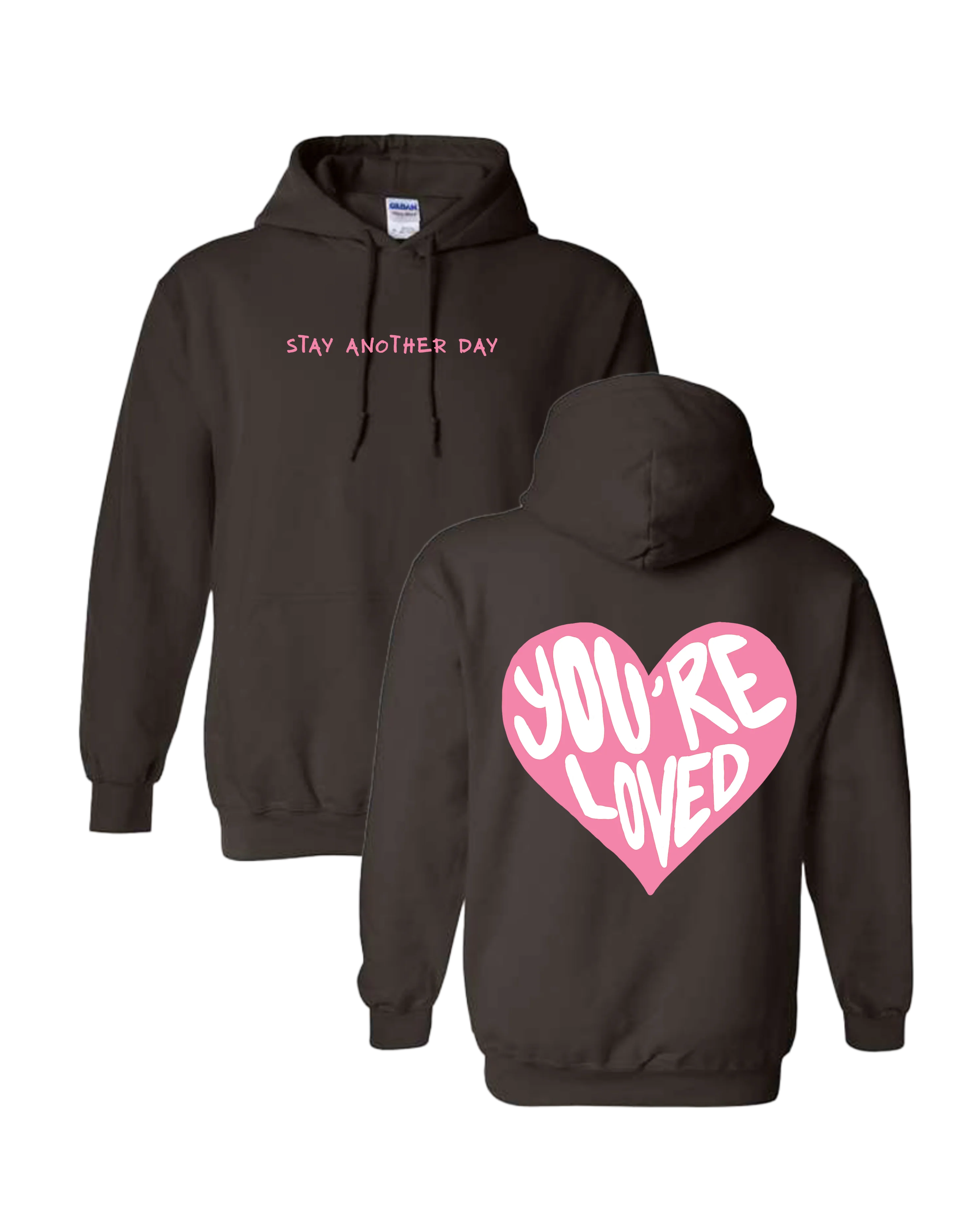 The You’re Loved – Valentine’s Collection Pink Heart Hoodie is designed to remind you (and everyone who sees it) that you matter. This super-comfortable hoodie features the small SAD logo on the front with You’re Loved text below, and a large pink heart design printed on the back.