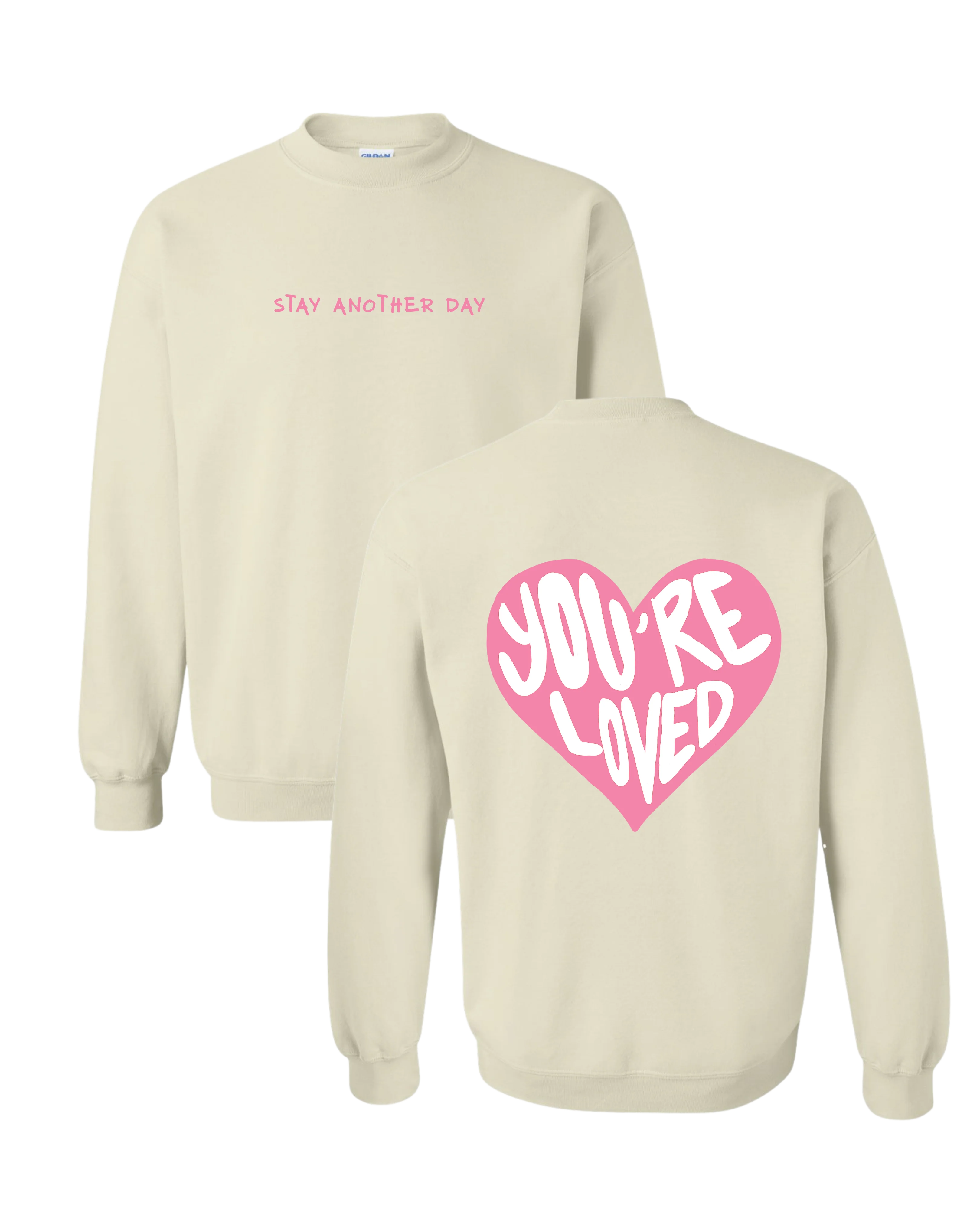 The You’re Loved – Valentine’s Collection Pink Heart Crewneck is designed to remind you (and everyone who sees it) that you matter. This super-comfortable crewneck features the small SAD logo on the front with You’re Loved text below, and a large pink heart design printed on the back.