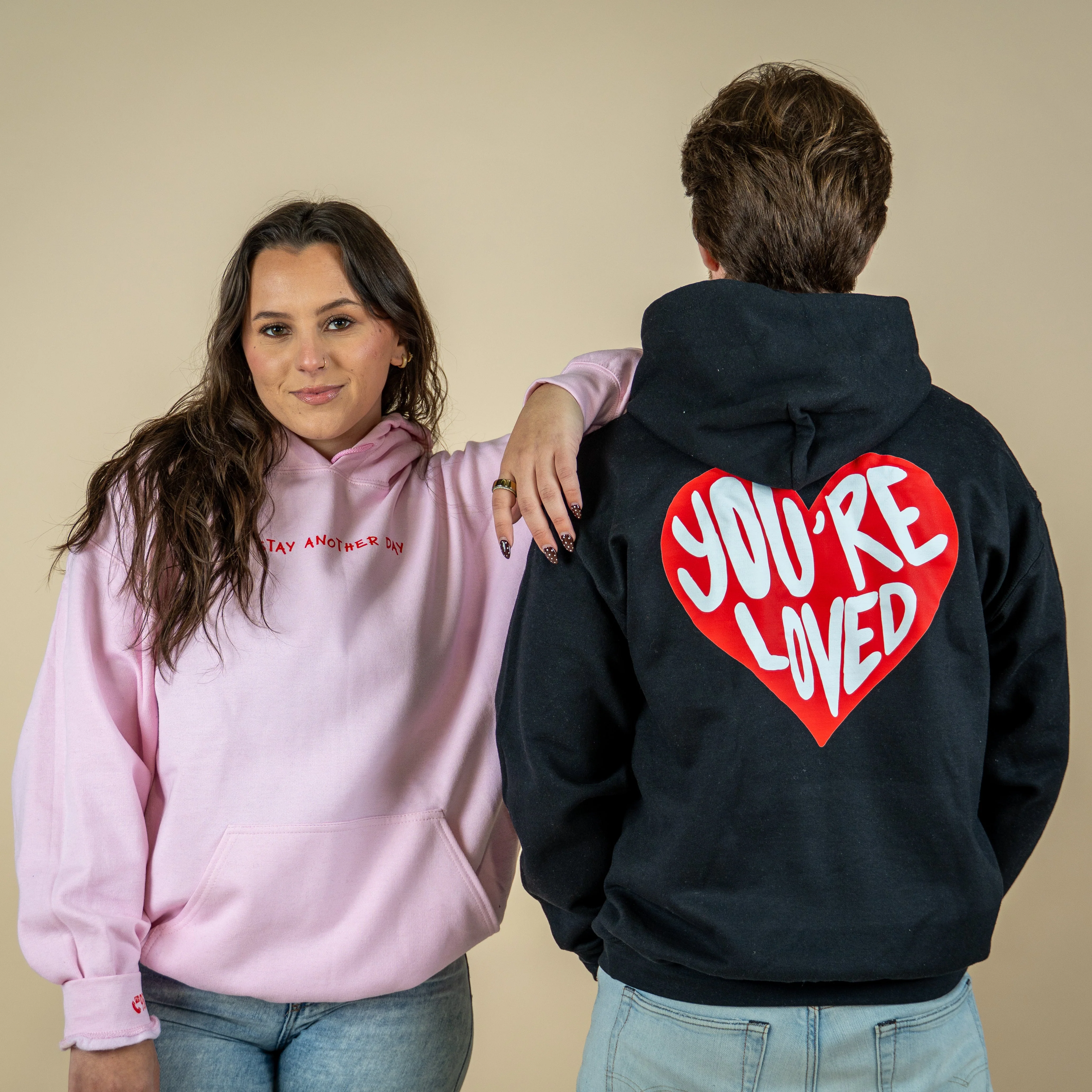The You’re Loved – Valentine’s Collection Red Heart Hoodie is designed to remind you (and everyone who sees it) that you matter. This super-comfortable hoodie features the small SAD logo on the front with You’re Loved text below, and a large pink heart design printed on the back.
